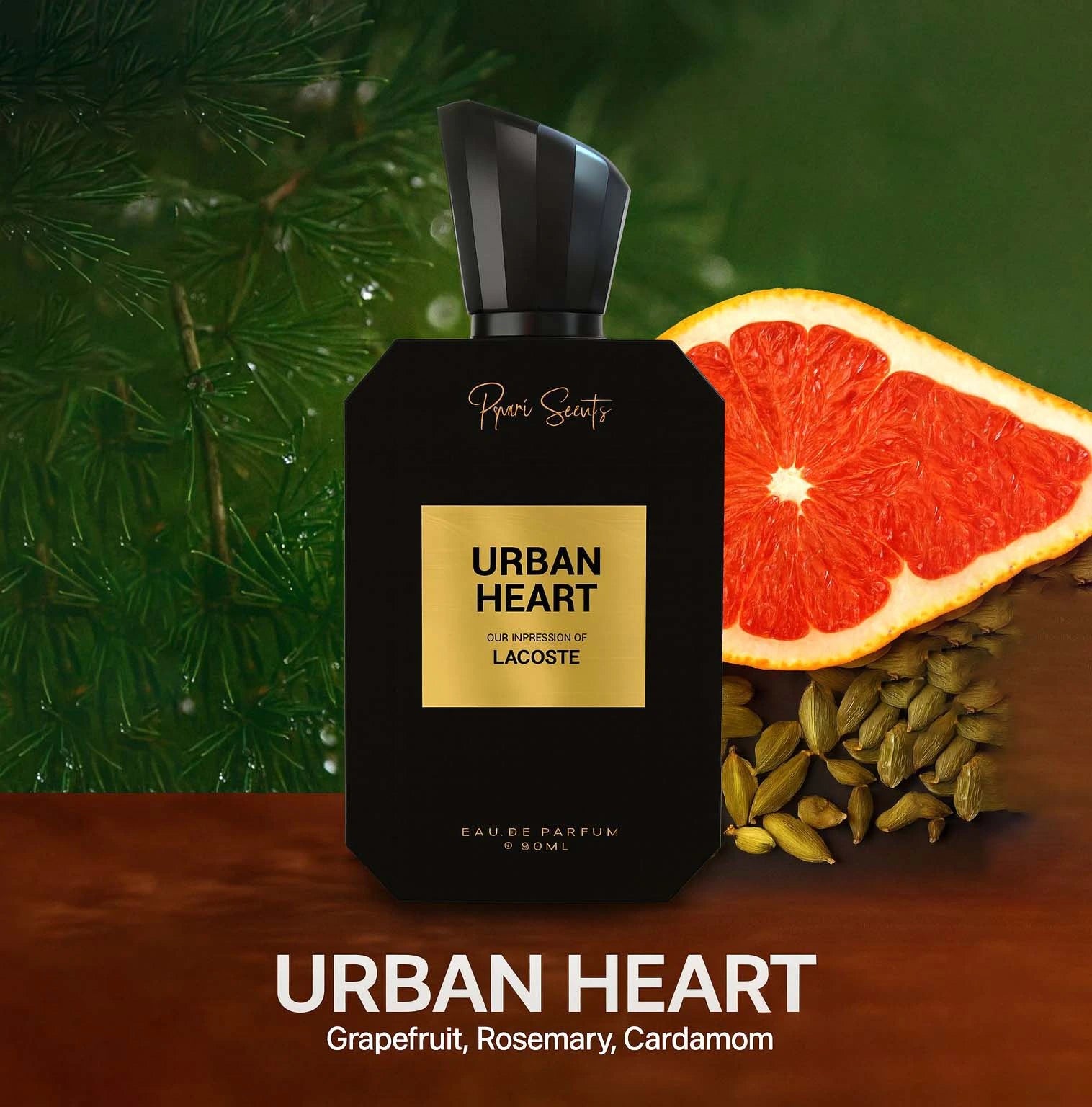 Urban Heart is a modern fragrance inspired by Lacoste Blanc, designed for the man who values sophistication and simplicity. It opens with a burst of refreshing citrus and herbal notes, perfectly balanced with a masculine woody base.